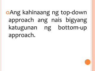 1ano Ang mga katangian ng top down approach SA pagharap ng siliraning pangkapaligiran. Ng katangian ng top-down at bottom-up approach.