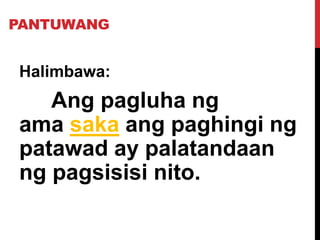 MGA URI NG PANGATNIG 1. Ito ay binubuo ng simuno at panaguri. Ang langis at tubig ay hindi mapagsasama.